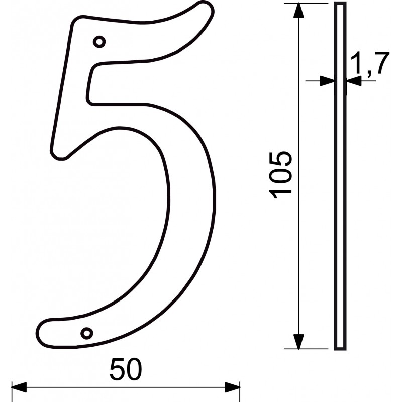 Hliníkové číslo v plochom „2D“ prevedení "5"