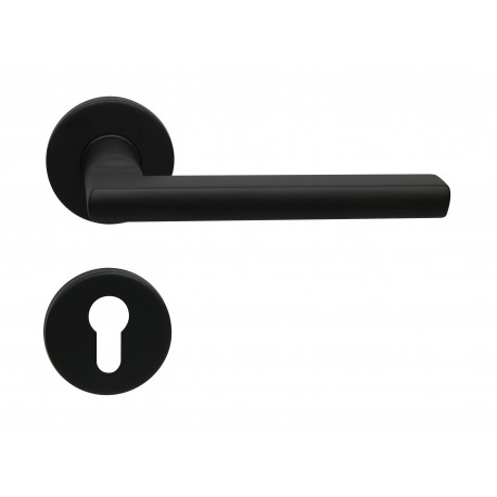 Nerezové kovanie na okrúhlej rozete s vratnou pružinou kľučiek.