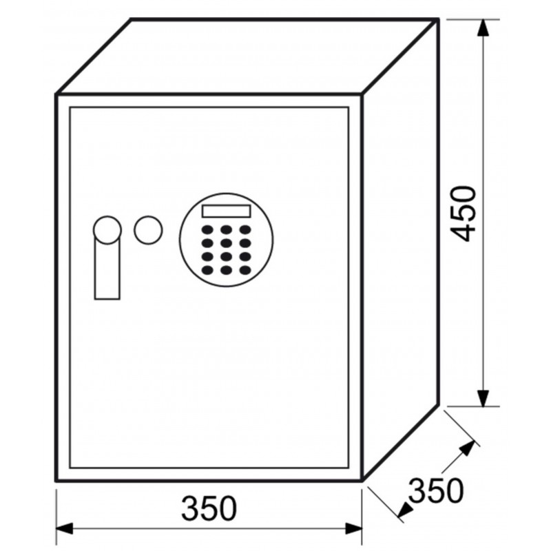 Oceľový sejf s elektronickým zámkom s alarmom, podsvieteným LCD displejom a páčkou k otvoreniu.