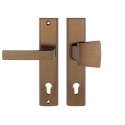Vysoko kvalitná moderná kľučka v prevedení kľučka - madlo. Vhodné pre vchodové dvere. Kovanie - plný hliník s eloxovaným povrchom, ktorý účinne chráni proti korózii a je odolný voči atmosférickým vplyvom. Predná časť kovanie je bez viditeľných spojovacích prvkov. Použiteľné u väčšiny vonkajších dverí na trhu. Výrobky z kolekcie sú v trendovej bronzovej farbe