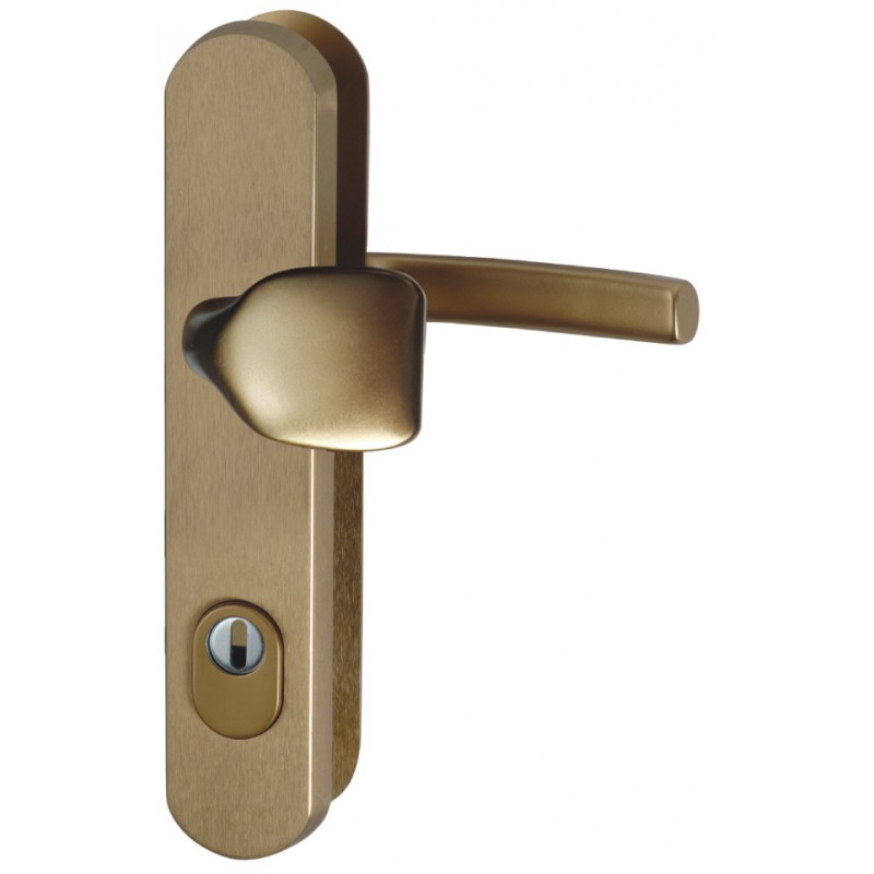Hliníkové bezpečnostné kovanie - madlo/kľučka s prekrytím vložky.