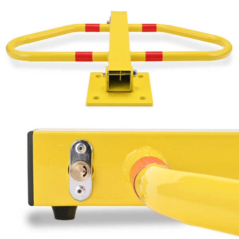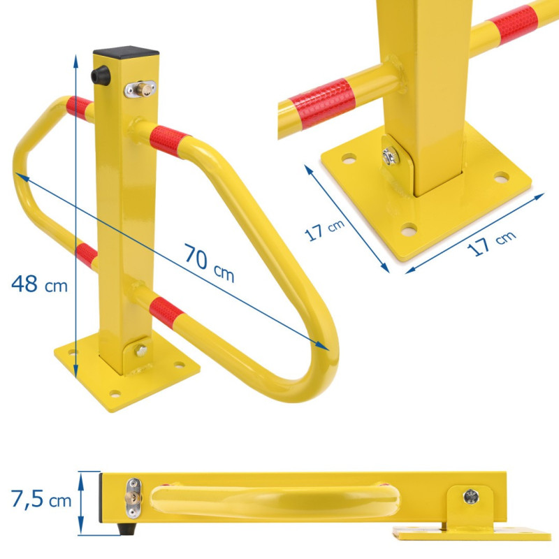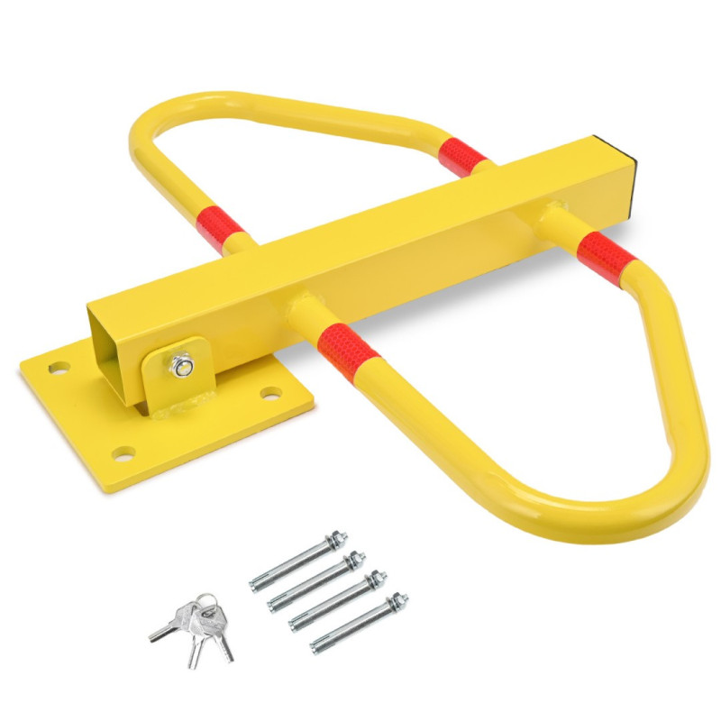 Sklopná uzamykateľná parkovacia blokáda, ktorá je pevná a odolná. Vyrobená z kvalitného materiálu. Výška blokády je 48 cm.